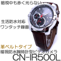 大人気、フルHD撮影の腕時計型ビデオカメラ「CN-IR500W」の革ベルトバージョン誕生!ベルトのデザインに合せて、文字盤のデザインも若干変更しております。