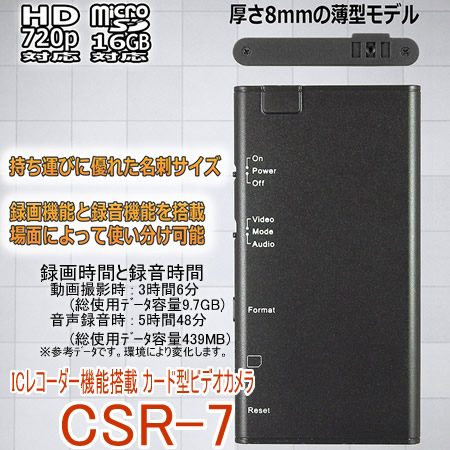 CSR-7 名刺サイズのICレコーダー機能を搭載したカード型ビデオカメラ