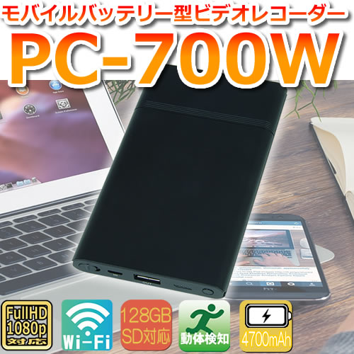 ※1:PC-700Wでは本体操作による静止画撮影はできませんが、アプリを使って静止画の撮影ができます。 ※2:撮影環境により多少前後します。 ※3:充電にUSBACアダプタ―をお使いになる場合は、DC5VでPSEマークの付いた物をお使いください。急速充電器は充電池にダメージを与える恐れがありますので使用しないでください。また、充電したままの放置はお止め下さい。 ※4:充電及び録画したデータをPCに移動するためのものです。リムーバブルディスクのようなご利用はおやめください。 ※5:再生には一般的な動画プレイヤーをご利用ください。プレイヤーによってはスムーズに動かない場合があります。その場合は、プレイヤーソフトを最新版にしてお試しいただくか、または他のプレイヤーをご利用ください。なお、当社では動画プレイヤーに関するサポートは行っておりません。
